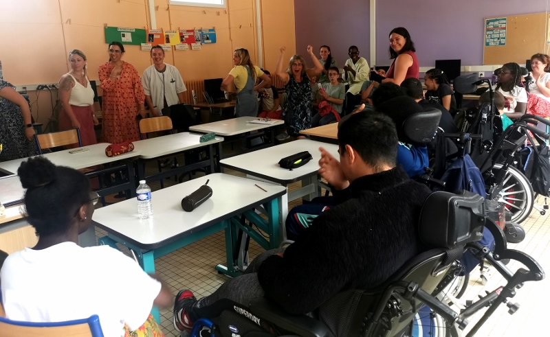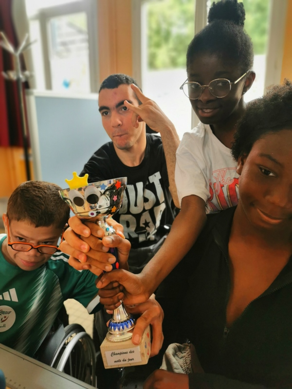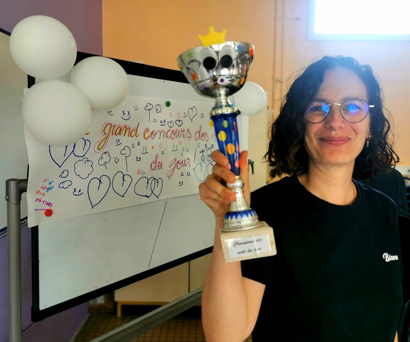 Ce matin, dernier jour de classe, a eu lieu le Grand Concours des Mots du Jour avec la classe de Cycle, 3 avec en équipe adverse un groupe d’adultes employés au Jard.
