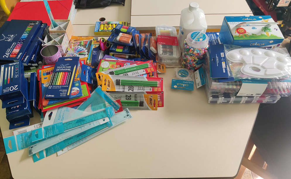 Grâce aux clients du magasin, nous avons récolté 40 kg de fournitures scolaires et de matériel créatifs pour nos jeunes !