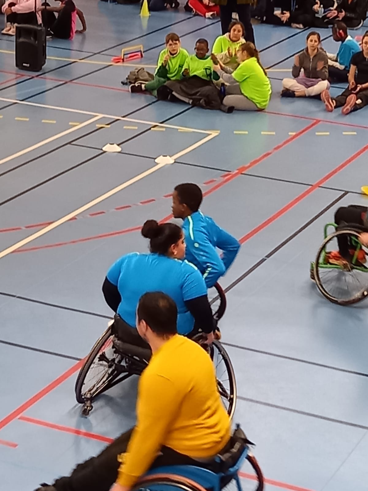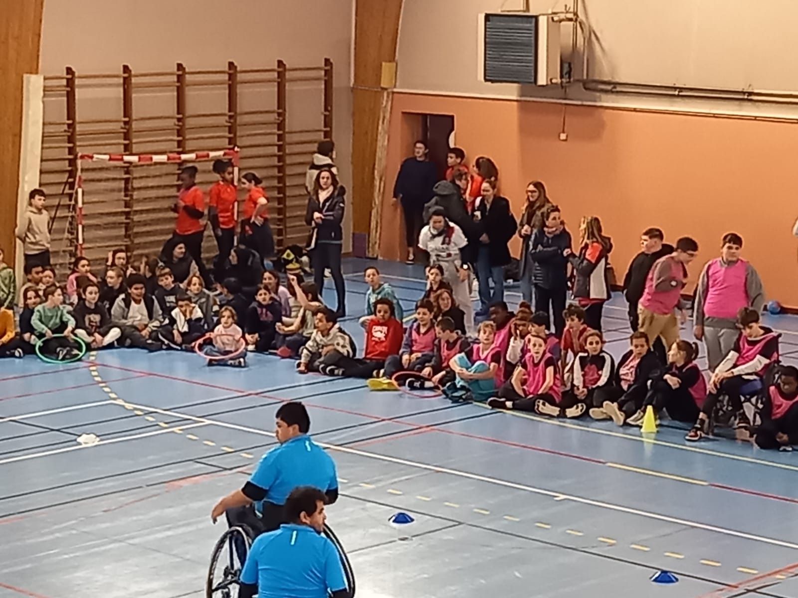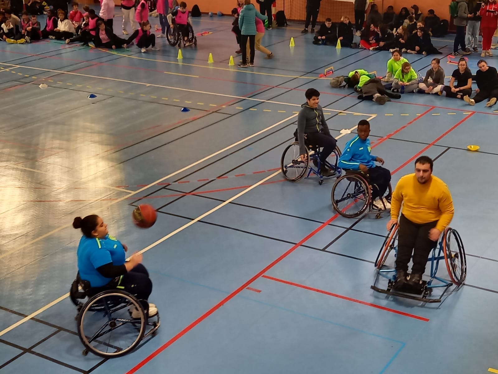 Au cours d’ateliers d’une quinzaine de minutes, en parallèle du basket-fauteuil, les élèves des établissements environnants ont pu s’essayer au tir à l’arc, au curling, au hand-ball, au tennis...