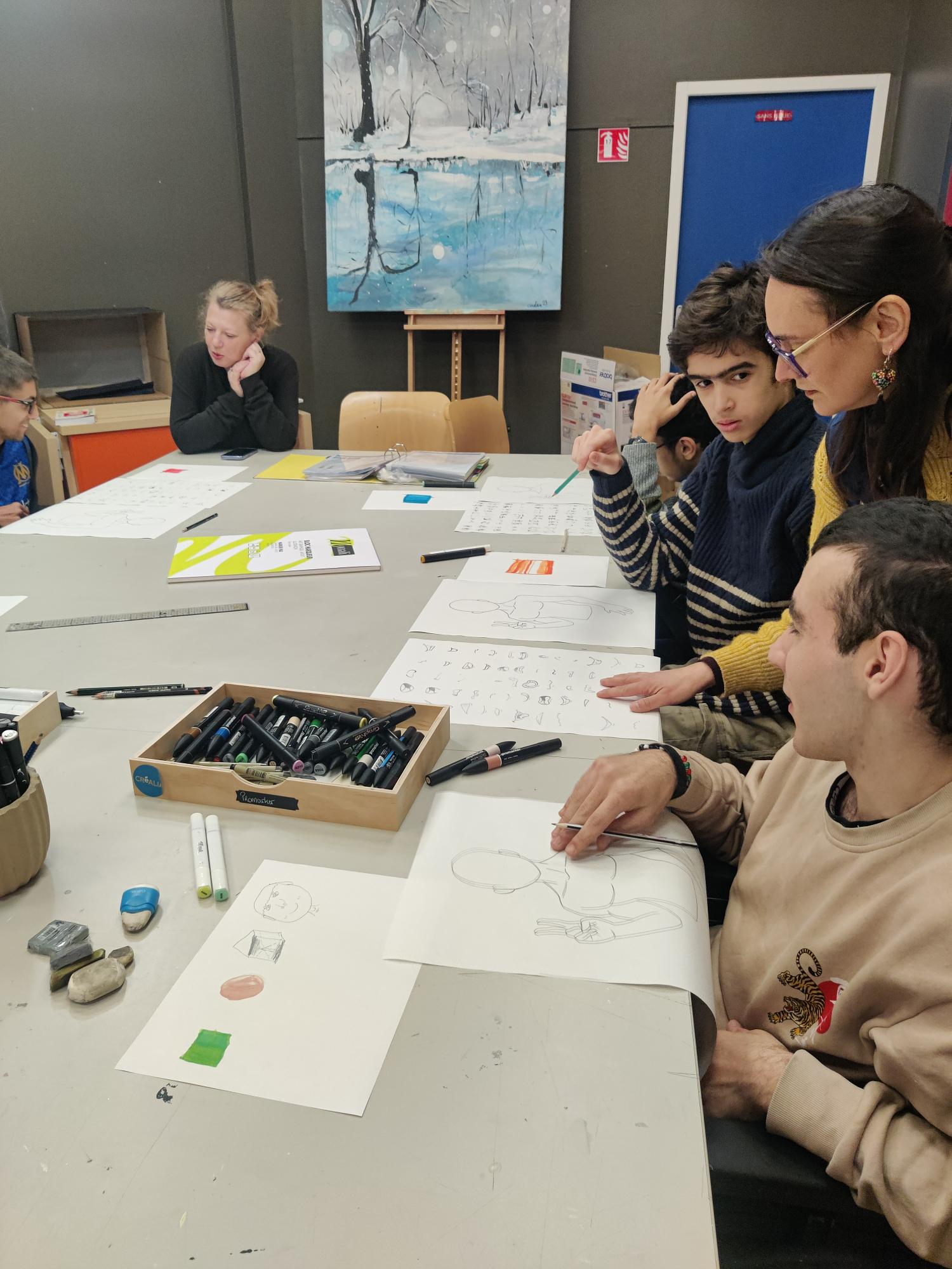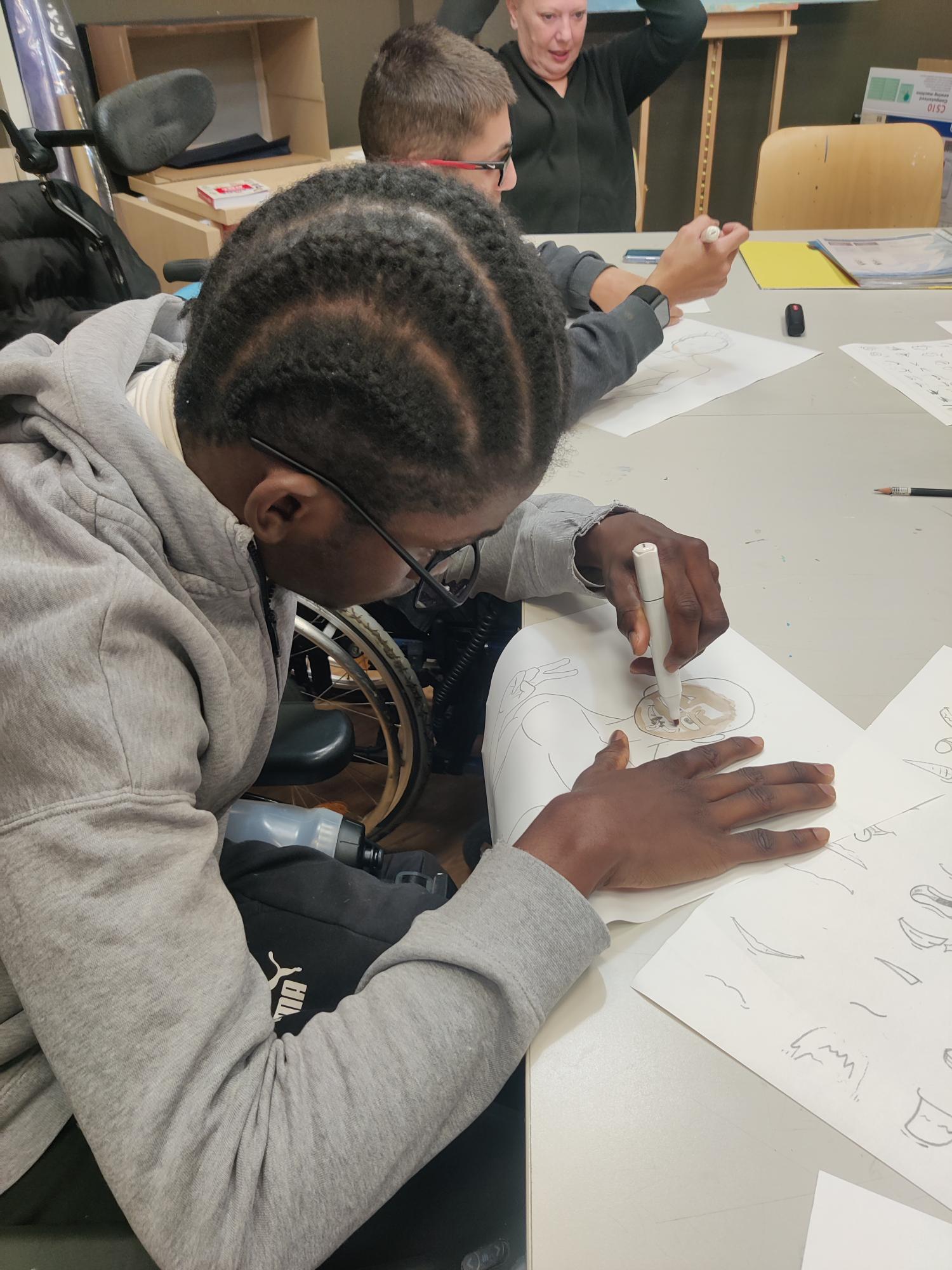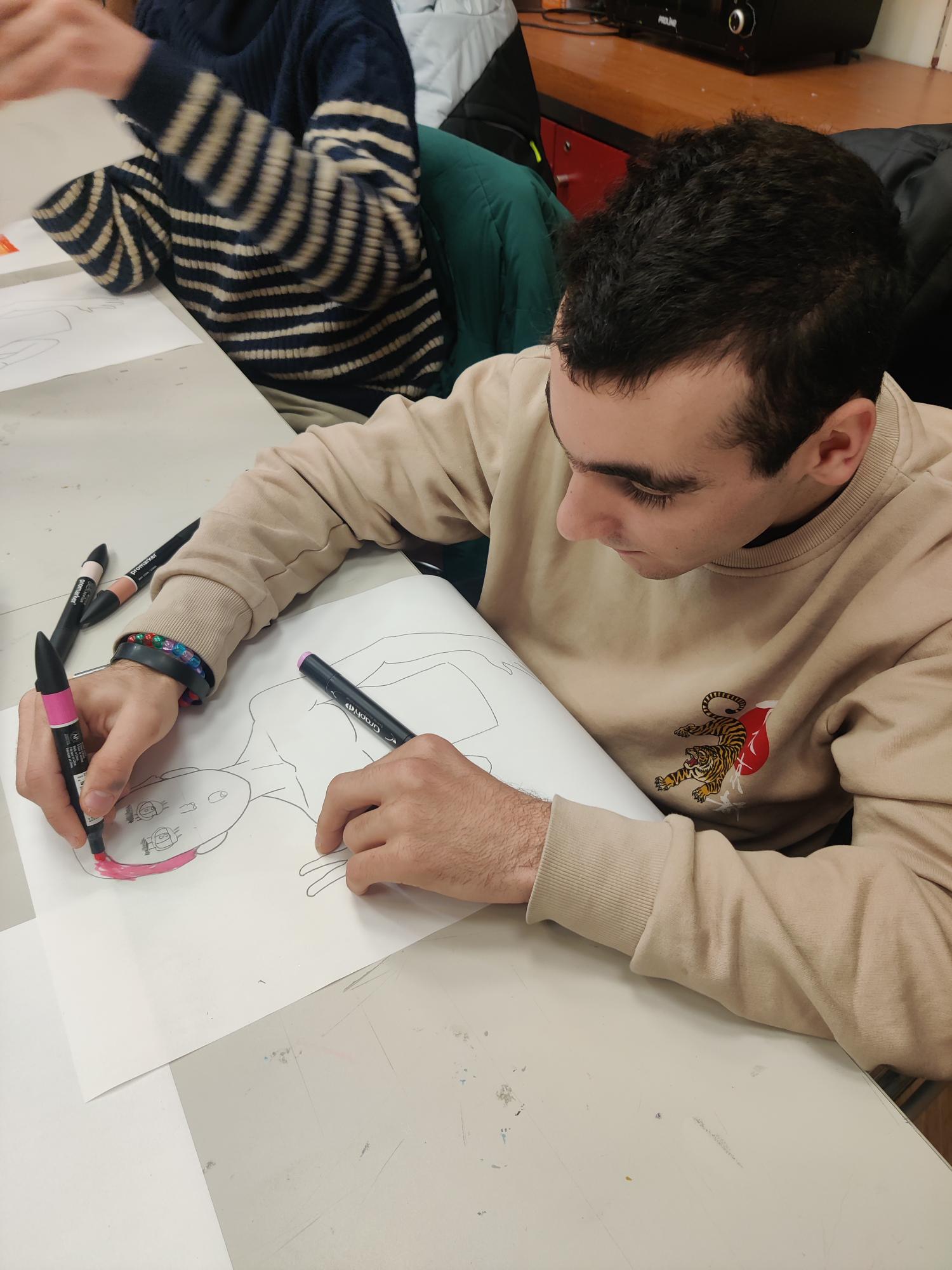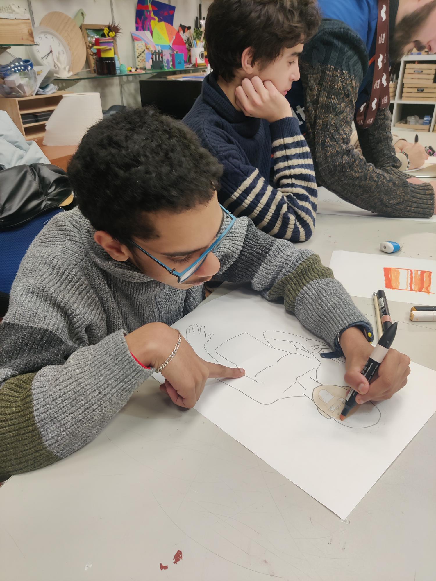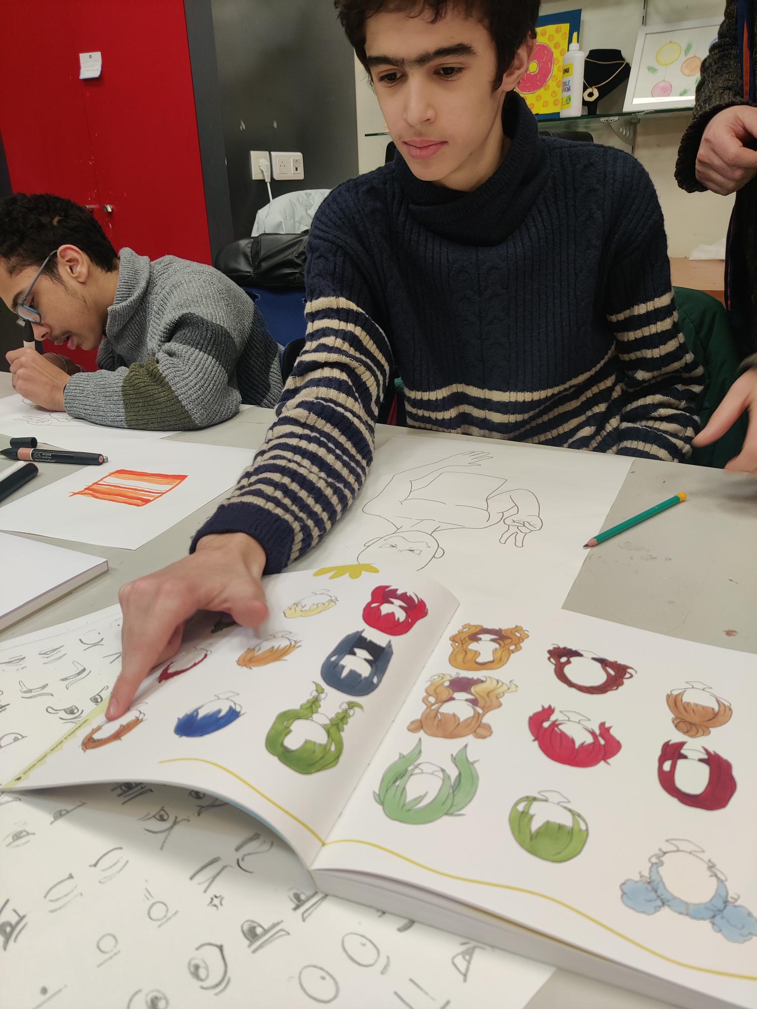 Au programme du jour : création d’un tableau de Manga grâce à des modèles pré-dessinés et des éléments du visage à calquer.